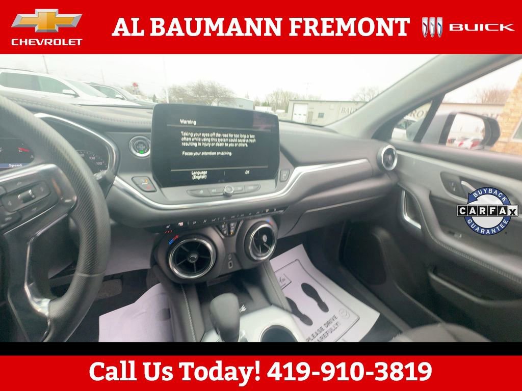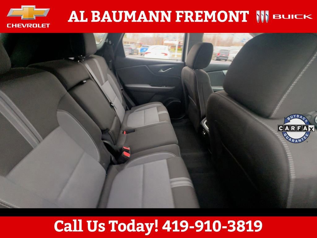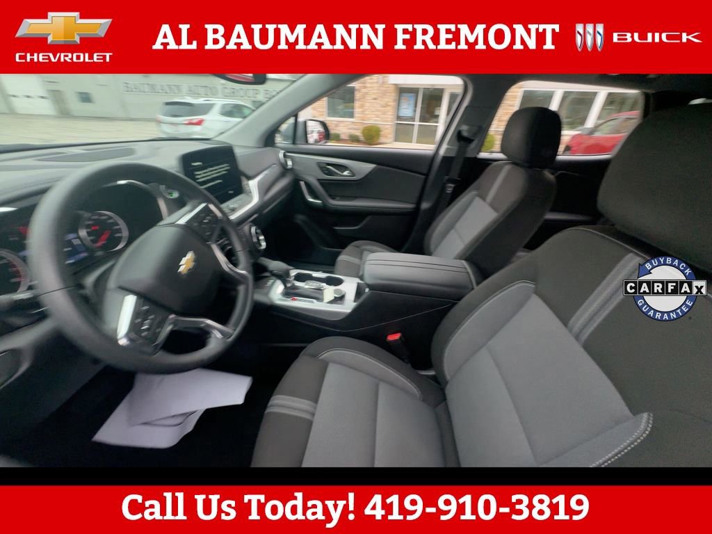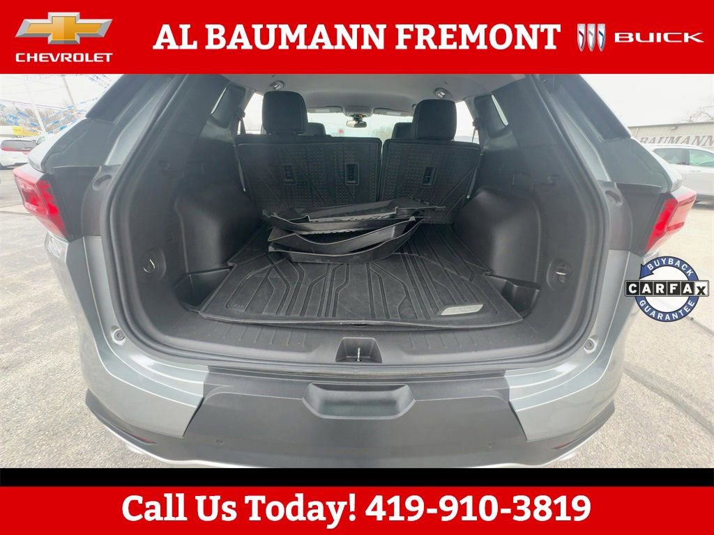 CALL,419-332-8236 or {1-866-330-3601}, 1st & 2nd Row All-Weather Floor Liners (LPO), Adaptive Cruise Control, Black Grille Bar LPO), Black Grille Bar Package (LPO), Black Roof-Mounted Side Rails, Convenience Package, Driver Confidence Package, Enhanced Automatic Emergency Braking, Floor Liner Package (LPO), Front & Rear Black Bowties, Inside Rear-View Auto-Dimming Mirror, Integrated Cargo Liner (LPO), Lane Change Alert w/Side Blind Zone Alert, Preferred Equipment Group 2LT, Rear Cross Traffic Alert, Rear Park Assist w/Audible Warning, Rear Power Programmable Liftgate, Universal Home Remote, Wireless Charging, 170 Amp Alternator, 3.47 Final Drive Axle Ratio, 4-Way Manual Front Passenger Seat Adjuster, 4-Wheel Disc Brakes, 6 Speakers, 6-Speaker Audio System Feature, 8-Way Power Driver Seat Adjuster, ABS brakes, Air Conditioning, Alloy wheels, AM/FM radio: SiriusXM with 360L, Apple CarPlay/Android Auto, Auto High-beam Headlights, Automatic temperature control, Black Lug Nuts (LPO), Brake assist, Bumpers: body-color, Child-Seat-Sensing Airbag, Compass, Delay-off headlights, Driver door bin, Driver vanity mirror, Dual front impact airbags, Dual front side impact airbags, Electronic Stability Control, Emergency communication system: OnStar and Chevrolet connected services capable, Four wheel independent suspension, Front & Rear Custom Molded Splash Guards, Front anti-roll bar, Front Bucket Seats, Front Center Armrest, Front dual zone A/C, Front reading lights, Fully automatic headlights, Gloss Black Emblem Kit (LPO), Heated door mirrors, Heated Driver & Front Passenger Seats, Heated front seats, Illuminated entry, Knee airbag, Leather Shift Knob, Low tire pressure warning, Occupant sensing airbag, Outside temperature display, Overhead airbag, Overhead console, Panic alarm, Passenger door bin, Passenger vanity mirror, Power door mirrors, Power Driver Lumbar Control, Power driver seat, Power steering, Power windows, Premium audio system: Chevrolet Infotainment 3 Plus, Premium Cloth Seat Trim, Radio data system, Radio: Chevrolet Infotainment 3 Plus System, Rear anti-roll bar, Rear reading lights, Rear seat center armrest, Rear window defroster, Rear window wiper, Remote keyless entry, Ride & Handling Suspension, Security system, SiriusXM w/360L, Speed control, Speed-sensing steering, Split folding rear seat, Spoiler, Steering wheel mounted audio controls, Tachometer, Telescoping steering wheel, Tilt steering wheel, Traction control, Trip computer, Variably intermittent wipers, Voltmeter, Wheels: 18 Grazen Metallic Aluminum, Wheels: 20 Gloss Black Aluminum, 1st & 2nd Row All-Weather Floor Liners (LPO), Adaptive Cruise Control, Black Grille Bar LPO), Black Grille Bar Package (LPO), Black Roof-Mounted Side Rails, Convenience Package, Driver Confidence Package, Enhanced Automatic Emergency Braking, Floor Liner Package (LPO), Front & Rear Black Bowties, Inside Rear-View Auto-Dimming Mirror, Integrated Cargo Liner (LPO), Lane Change Alert w/Side Blind Zone Alert, Preferred Equipment Group 2LT, Rear Cross Traffic Alert, Rear Park Assist w/Audible Warning, Rear Power Programmable Liftgate, Universal Home Remote, Wireless Charging.