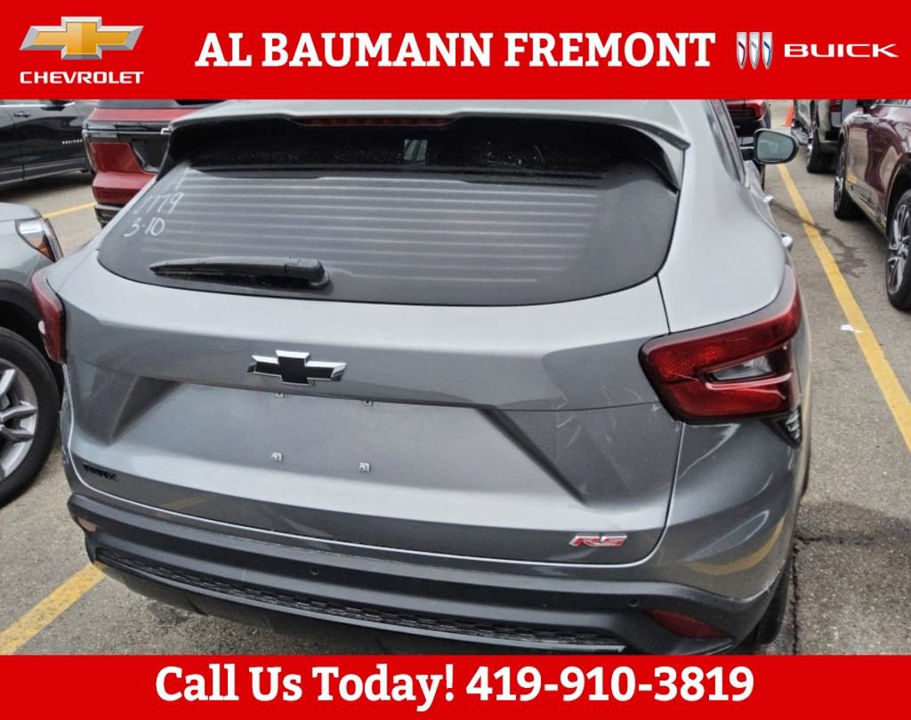 Recent Arrival! Odometer is 1466 miles below market average! CARFAX One-Owner. Clean CARFAX.Sterling Gray Metallic 2025 Chevrolet Trax 2RS 4D Sport Utility 1.2L I3 DI Turbocharged DOHC 12V LEV3-ULEV70 137hp 6-Speed Automatic FWDONE OWNER CLEAN CARFAX!!Car shopping is sometimes inconvenient and stressful, and we want to take the hassle out of this all-too-common experience. If youâre interested in more convenience, less frustration and a process that works efficiently to meet your needs as a customer. Al BAUMANN AUTO GROUP. The Best Price Up Front Cash Offers For Any Trade-In Multiple Financing Quotes In Minutes A Team Of Dedicated Salespeople.CALL,419-332-8236 or {1-866-330-3601}, Adaptive Cruise Control, Driver Confidence Package, Lane Change Alert with Side Blind Zone Alert, Preferred Equipment Group 2RS, Rear Cross-Traffic Alert, Rear Park Assist, 2-Way Adjustable Front Head Restraints, 2-Way Power Driver Lumbar Seat Adjuster, 3.50 Final Drive Axle Ratio, 4-Way Manual Front Passenger Seat Adjuster, 4-Wheel Disc Brakes, 6 Speakers, 6-Speaker Audio System Feature, 6-Way Manual Driver Seat Adjuster, 8-Way Power Driver Seat Adjuster, ABS brakes, Air Conditioning, Alloy wheels, AM/FM radio: SiriusXM, Auto High-beam Headlights, Automatic temperature control, Brake assist, Bumpers: body-color, Compass, Delay-off headlights, Driver door bin, Driver vanity mirror, Dual front impact airbags, Dual front side impact airbags, Electronic Stability Control, Emergency communication system: OnStar One Essentials, Evotex Seat Trim, Exterior Parking Camera Rear, Front and Rear All-Weather Floor Mats, Front anti-roll bar, Front Bucket Seats, Front Center Armrest, Front reading lights, Front wheel independent suspension, Fully automatic headlights, Heated door mirrors, Heated Driver and Front Passenger Seats, Heated front seats, Heated steering wheel, Illuminated entry, Jet Black Cargo Liner, Leather steering wheel, Low tire pressure warning, Occupant sensing airbag, Outside temperature display, Overhead airbag, Overhead console, Panic alarm, Passenger door bin, Passenger vanity mirror, Power door mirrors, Power steering, Power windows, Premium audio system: Chevrolet Infotainment 3, Radio data system, Radio: AM/FM Stereo Audio System, Rear window defroster, Rear window wiper, Remote keyless entry, Security system, SiriusXM Trial Subscription, Speed control, Split folding rear seat, Spoiler, Sport steering wheel, Steering wheel mounted audio controls, Tachometer, Telescoping steering wheel, Tilt steering wheel, Traction control, Trip computer, Variably intermittent wipers, Wheels: 19 Black-Painted Machined Aluminum, Adaptive Cruise Control, Driver Confidence Package, Lane Change Alert with Side Blind Zone Alert, Preferred Equipment Group 2RS, Rear Cross-Traffic Alert, Rear Park Assist.