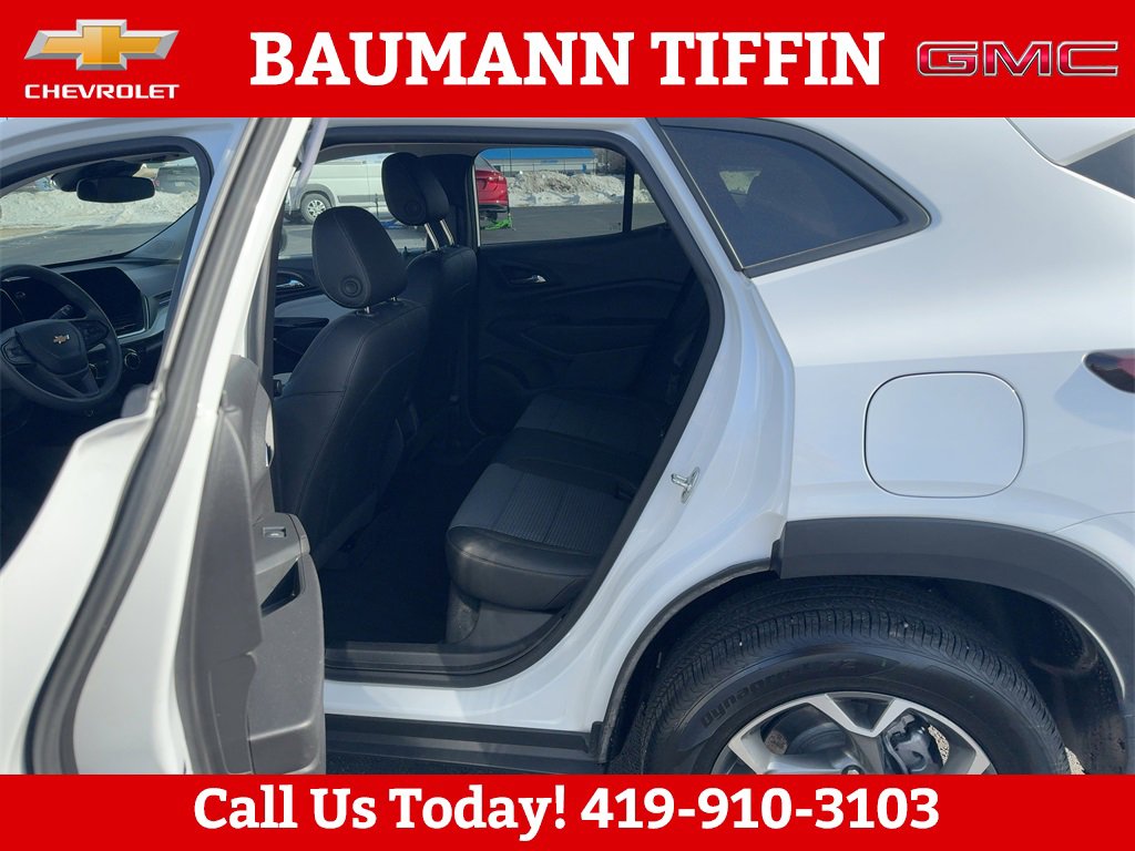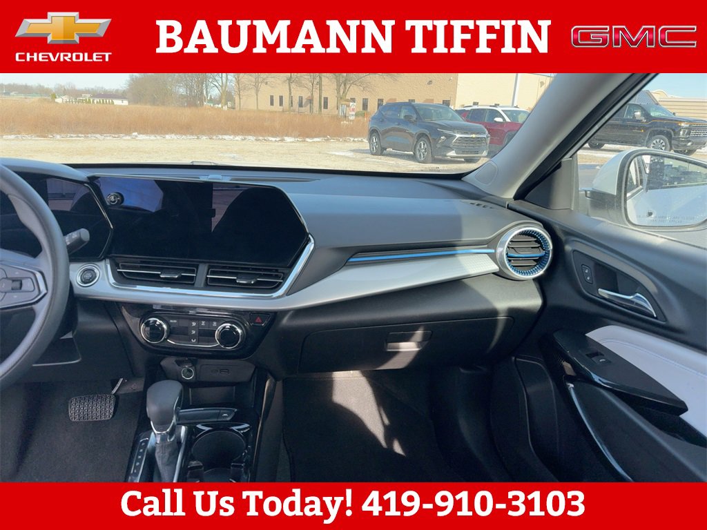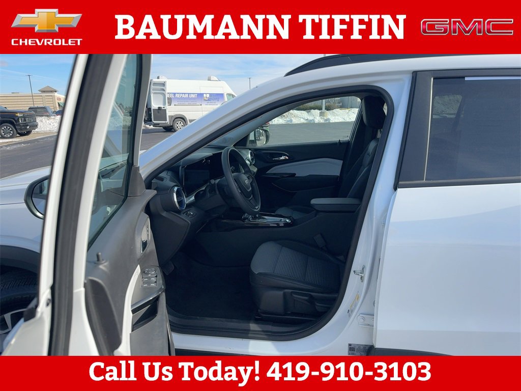 Priced below KBB Fair Purchase Price! Odometer is 4063 miles below market average! CARFAX One-Owner. Clean CARFAX.Summit White 2025 Chevrolet Trax LT 4D Sport Utility 1.2L I3 DI Turbocharged DOHC 12V LEV3-ULEV70 137hp 6-Speed Automatic FWD2-Way Adjustable Front Head Restraints, 3.50 Final Drive Axle Ratio, 4-Way Manual Front Passenger Seat Adjuster, 4-Wheel Disc Brakes, 6 Speakers, 6-Speaker Audio System Feature, 6-Way Manual Driver Seat Adjuster, ABS brakes, Air Conditioning, Alloy wheels, AM/FM radio: SiriusXM, Auto High-beam Headlights, Automatic temperature control, Brake assist, Bumpers: body-color, Cloth/Evotex Seat Trim, Compass, Delay-off headlights, Driver door bin, Driver vanity mirror, Dual front impact airbags, Dual front side impact airbags, Electronic Stability Control, Emergency communication system: OnStar One Essentials, Exterior Parking Camera Rear, Front anti-roll bar, Front Bucket Seats, Front Center Armrest, Front reading lights, Front wheel independent suspension, Fully automatic headlights, Illuminated entry, License Plate Front Mounting Package, Low tire pressure warning, Occupant sensing airbag, Outside temperature display, Overhead airbag, Overhead console, Panic alarm, Passenger door bin, Passenger vanity mirror, Power door mirrors, Power steering, Power windows, Preferred Equipment Group 1LT, Premium audio system: Chevrolet Infotainment 3, Radio data system, Radio: AM/FM Stereo Audio System, Rear window defroster, Rear window wiper, Remote keyless entry, Security system, SiriusXM Trial Subscription, Speed control, Split folding rear seat, Spoiler, Steering wheel mounted audio controls, Tachometer, Telescoping steering wheel, Tilt steering wheel, Traction control, Trip computer, Variably intermittent wipers, Wheels: 17 Inch Gray-Painted Machined Aluminum Alloy.