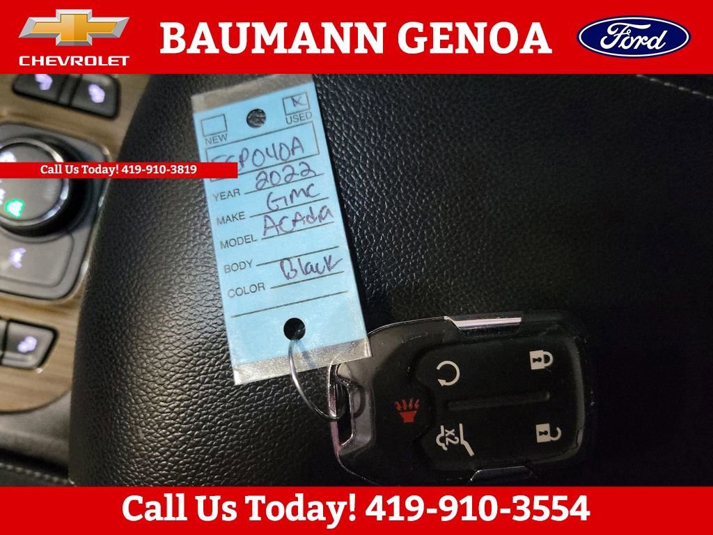 Odometer is 5628 miles below market average! Clean CARFAX.Ebony Twilight Metallic 2022 GMC Acadia SLE 4D Sport Utility 2.0L Turbocharged 9-Speed Automatic AWDBAUMANN AUTO GROUP GENOA - 419.855.8366.We Make Car Buying Fun, Fast, and HASSLE FREE.CLEAN CARFAX REPORT, AWD, Jet Black Cloth, 120-Volt Power Outlet, 8-Way Power Driver Seat Adjuster, Apple CarPlay/Android Auto, Bose Premium 8-Speaker Audio System Feature, Brushed Aluminum Roof Rails, Driver Convenience Package, Hands Free Power Programmable Liftgate, Heated Driver & Front Passenger Seats, Infotainment Package, Power Driver Lumbar Control Seat Adjuster, Radio: AM/FM 8 Diagonal Multi-Touch Navigation, Remote Start, Wireless Apple CarPlay/Wireless Android Auto, 3.47 Final Drive Axle Ratio, 3rd row seats: split-bench, 4-Way Manual Driver Seat Adjuster, 4-Way Manual Passenger Seat Adjuster, 4-Wheel Disc Brakes, 6 Speakers, 6-Passenger (2-2-2 Seating Configuration), 6-Speaker Audio System Feature, ABS brakes, Air Conditioning, Alloy wheels, AM/FM radio: SiriusXM, Auto High-beam Headlights, Automatic temperature control, Brake assist, Bumpers: body-color, Compass, Delay-off headlights, Driver door bin, Driver vanity mirror, Dual front impact airbags, Dual front side impact airbags, Electronic Stability Control, Emergency communication system: OnStar and GMC Connected Services capable, Four wheel independent suspension, Front anti-roll bar, Front Bucket Seats, Front Center Armrest, Front dual zone A/C, Front reading lights, Fully automatic headlights, Heated door mirrors, Illuminated entry, Knee airbag, Low tire pressure warning, Not Equipped w/Driver & Fr Passenger Heated Seats, Not Equipped w/Front & Rear Park Assist, Occupant sensing airbag, Outside temperature display, Overhead airbag, Overhead console, Panic alarm, Passenger door bin, Passenger vanity mirror, Power door mirrors, Power steering, Power windows, Preferred Equipment Group 3SA, Premium audio system: GMC Infotainment System, Premium Cloth Seat Trim, Radio data system, Radio: AM/FM w/8 Diagonal Multi-Touch Display, Rear air conditioning, Rear anti-roll bar, Rear reading lights, Rear window defroster, Rear window wiper, Remote keyless entry, Security system, SiriusXM Radio, Speed control, Speed-sensing steering, Spoiler, Steering wheel mounted audio controls, Tachometer, Telescoping steering wheel, Tilt steering wheel, Traction control, Trip computer, Turn signal indicator mirrors, Variably intermittent wipers, Voltmeter, Wheels: 18 Machined Aluminum w/Dark Accents, AWD, Jet Black Cloth, 120-Volt Power Outlet, 8-Way Power Driver Seat Adjuster, Apple CarPlay/Android Auto, Bose Premium 8-Speaker Audio System Feature, Brushed Aluminum Roof Rails, Driver Convenience Package, Hands Free Power Programmable Liftgate, Heated Driver & Front Passenger Seats, Infotainment Package, Power Driver Lumbar Control Seat Adjuster, Radio: AM/FM 8 Diagonal Multi-Touch Navigation, Remote Start, Wireless Apple CarPlay/Wireless Android Auto.