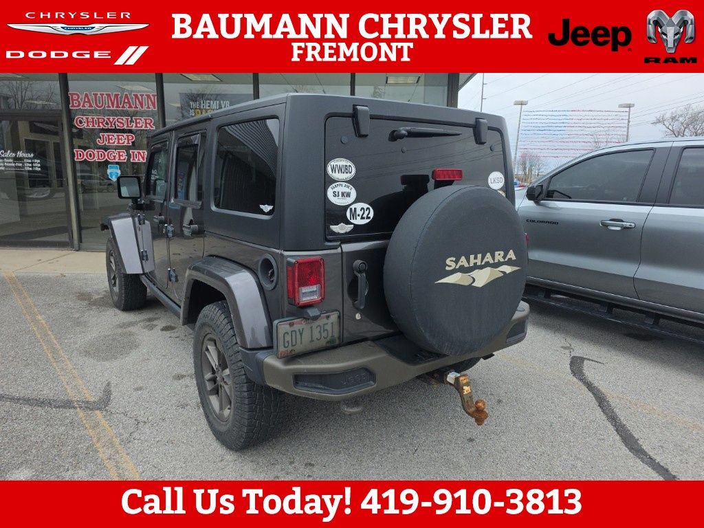 CALL.{419-332-8291}{1-877-394-1162}, 2 Front & 1 Rear Bronze Tow Hook, 75th Anniversary Badge, Anti-Spin Differential Rear Axle, Body Color Grille w/Bronze Accent, Bronze Jeep Grille Badge, Bronze Trail Rated Badge, Chrome/Leather Wrapped Shift Knob, Class II Receiver Hitch, Connectivity Group, GPS Navigation, Heated Front Seats, Hood w/Power Dome, Jeep 75th Anniversary Package, Leather Seat w/Cloth (Ombre Mesh), Leather Wrapped Steering Wheel, Low Gloss Black Wrangler Decal, MOPAR Slush Mats, Moroccan Sun Instrument Panel Bezel, Moroccan Sun Interior Accents, Painted Front Bumper, Painted Rear Bumper, Premium Black Sunrider Soft Top, Quick Order Package 24H 75th Anniversary, Radio: 430, Remote USB Port, Sunrider Soft Top, Tire Pressure Monitoring Display, Trailer Tow Group, Trailer Tow w/4-Pin Connector Wiring, Uconnect Voice Command w/Bluetooth, Vehicle Information Center, Wheels: 17 x 7.5 Aluminum Bronze, 18" x 7.5" Polished Satin Carbon Wheels, 3.21 Rear Axle Ratio, 4-Wheel Disc Brakes, 40GB Hard Drive w/28GB Available, 5-Year SiriusXM Travel Link Service, 6.5" Touchscreen Display, 8 Speakers, ABS brakes, Air Conditioning, Alloy wheels, AM/FM radio: SiriusXM, Audio Jack Input for Mobile Devices, Auto-dimming Rear-View mirror, Black 3-Piece Hard Top, Brake assist, CD player, Cloth Seats w/Adjustable Head Restraints, Compass, Driver door bin, Driver vanity mirror, Dual front impact airbags, Electronic Stability Control, Freedom Panel Storage Bag, Freedom Top Hard Top Headliner, Front anti-roll bar, Front Bucket Seats, Front Center Armrest w/Storage, Front fog lights, Front reading lights, Fully automatic headlights, Heated door mirrors, Heavy Duty Suspension w/Gas Shocks, Illuminated entry, Integrated roll-over protection, Leather steering wheel, Low tire pressure warning, Occupant sensing airbag, Outside temperature display, Panic alarm, Passenger door bin, Passenger vanity mirror, Power door mirrors, Power steering, Power windows, Radio data system, Radio: 130, Radio: 430 (DISC), Radio: 430N, Rear anti-roll bar, Rear Window Defroster, Rear Window Wiper/Washer, Remote keyless entry, Remote Start System, Security system, SiriusXM Travel Link, Speed control, Split folding rear seat, Steering wheel mounted audio controls, Supplemental Front Seat Side Airbags, Tachometer, Tilt steering wheel, Traction control, Trip computer, Variably intermittent wipers, 2 Front & 1 Rear Bronze Tow Hook, 75th Anniversary Badge, Anti-Spin Differential Rear Axle, Body Color Grille w/Bronze Accent, Bronze Jeep Grille Badge, Bronze Trail Rated Badge, Chrome/Leather Wrapped Shift Knob, Class II Receiver Hitch, Connectivity Group, GPS Navigation, Heated Front Seats, Hood w/Power Dome, Jeep 75th Anniversary Package, Leather Seat w/Cloth (Ombre Mesh), Leather Wrapped Steering Wheel, Low Gloss Black Wrangler Decal, MOPAR Slush Mats, Moroccan Sun Instrument Panel Bezel, Moroccan Sun Interior Accents, Painted Front Bumper, Painted Rear Bumper, Premium Black Sunrider Soft Top, Quick Order Package 24H 75th Anniversary, Radio: 430, Remote USB Port, Sunrider Soft Top, Tire Pressure Monitoring Display, Trailer Tow Group, Trailer Tow w/4-Pin Connector Wiring, Uconnect Voice Command w/Bluetooth, Vehicle Information Center, Wheels: 17