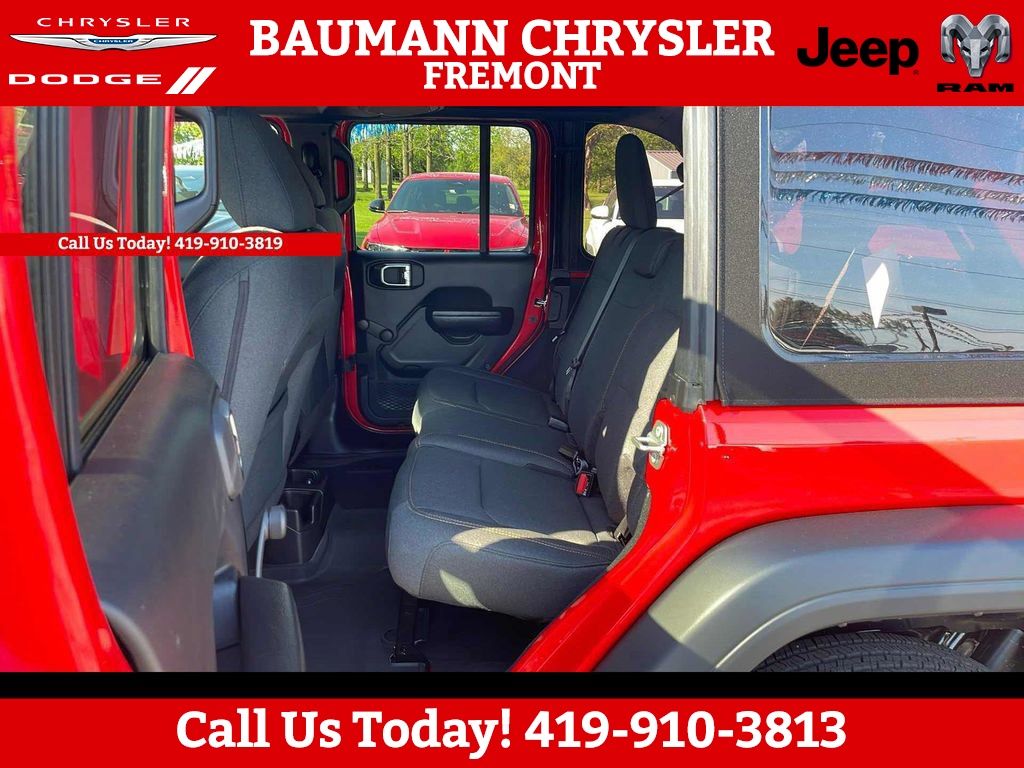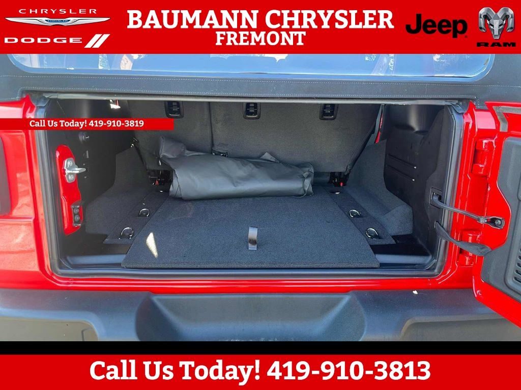 110 MPH Vehicle Max Speed Calibration, 3.45 Overall Top Gear Ratio, 4-Wheel Disc Brakes, 8 Speakers, ABS brakes, Air Conditioning, AM/FM radio, Apple CarPlay/Android Auto, Aux Battery, Brake assist, Cloth Low-Back Bucket Seats, Compass, Deep Tint Sunscreen Windows, Delay-off headlights, Driver door bin, Driver vanity mirror, Dual front impact airbags, Dual front side impact airbags, Electronic Stability Control, Front anti-roll bar, Front Bucket Seats, Front Center Armrest w/Storage, Front fog lights, Front reading lights, Integrated roll-over protection, Low tire pressure warning, MOPAR All-Weather Floor Mats, Mopar Black Tubular Side Steps, Non-Lock Fuel Cap w/o Discriminator, Normal Duty Suspension, Occupant sensing airbag, Outside temperature display, Overhead airbag, ParkView Rear Back-Up Camera, Passenger door bin, Passenger vanity mirror, Power steering, Quick Order Package 24B Sport, Radio data system, Radio: Uconnect 5 w/12.3" Display, Rear anti-roll bar, Rear reading lights, Soft Top Window Storage Bag, Speed control, Split folding rear seat, Steering wheel mounted audio controls, Stop-Start Dual Battery System, Tachometer, Telescoping steering wheel, Tilt steering wheel, Traction control, Trip computer, Variably intermittent wipers, Wheels: 17" x 7.5" Black Steel Styled.