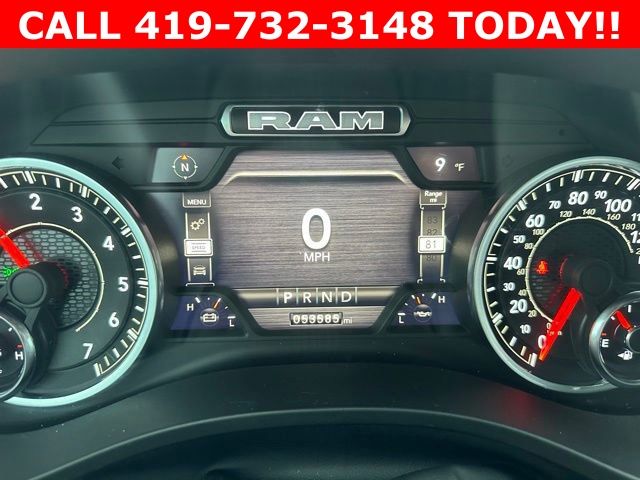 CALL 419- 732 -3148 or 419- 960- 4141, 2nd Row In Floor Storage Bins, 3 Rear Seat Head Restraints, 3.21 Rear Axle Ratio, 4 Way Front Headrests, 4-Wheel Disc Brakes, 48V Belt Starter Generator, 4G LTE Wi-Fi Hot Spot, 6 Speakers, 8.4" Touchscreen Display, ABS brakes, Air Conditioning, Alloy wheels, AM/FM radio, Apple CarPlay, Auto-Dimming Exterior Driver Mirror, Auto-Dimming Rear-View Mirror, Big Horn Badge, Big Horn Level 1 Equipment Group, Black Exterior Mirrors, Black Premium Power Mirrors, Bluetooth Handsfree Phone & Audio, Brake assist, Bumpers: chrome, Class IV Receiver Hitch, Cloth Bench Seat, Cluster 3.5" TFT Color Display, Cluster 7.0" TFT Color Display, Compass, Connected Services Delete Credit, Connectivity - US/Canada, Convex Wide-Angle Mirror Insert, Delay-off headlights, Driver door bin, Dual front impact airbags, Dual front side impact airbags, Electronic Stability Control, Emergency communication system: SiriusXM Guardian, Exterior Mirrors Courtesy Lamps, Exterior Mirrors w/Heating Element, Exterior Mirrors w/Supplemental Signals, For Details, Visit DriveUconnect.com, Front anti-roll bar, Front Center Armrest w/Storage, Front fog lights, Front License Plate Bracket, Front reading lights, Front Seat Back Map Pockets, Front wheel independent suspension, Fully automatic headlights, Global Telematics Box Module (TBM), Glove Box Lamp, Google Android Auto, GPS Antenna Input, Heated door mirrors, Heavy-Duty Engine Cooling, Illuminated entry, Integrated Center Stack Radio, Integrated Voice Command w/Bluetooth, Leather steering wheel, Low tire pressure warning, Occupant sensing airbag, Outside temperature display, Overhead airbag, Overhead console, Panic alarm, ParkView Rear Back-Up Camera, Passenger door bin, Passenger vanity mirror, Power 2-Way Driver Lumbar Adjust, Power 8-Way Driver Seat, Power Adjustable Pedals, Power door mirrors, Power steering, Power windows, Power-Folding Mirrors, Quick Order Package 27Z Big Horn, Radio data system, Radio: Uconnect 3 w/5" Display, Radio: Uconnect 5 W w/8.4" Display, Rear 60/40 Folding Seat, Rear anti-roll bar, Rear Dome w/On/Off Switch Lamp, Rear Power Sliding Window, Rear seat center armrest, Rear step bumper, Rear Window Defroster, Remote keyless entry, Remote Start System, SiriusXM Radio Service, SiriusXM Satellite Radio, Speed control, Split folding rear seat, Steering wheel mounted audio controls, Sun Visors w/Illuminated Vanity Mirrors, Tachometer, Telescoping steering wheel, Tilt steering wheel, Traction control, Trip computer, Universal Garage Door Opener, USB Host Flip, Variably intermittent wipers, Voltmeter, Wheels: 18" x 8" Cast-Aluminum Painted, Wheels: 20" x 9" Aluminum Chrome Clad (WRK).
